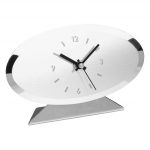Pöytäkello kiillotettua ja harjattua ruostumatonta terästä. Mitat 50 x 205 x 125mm, paino 0,2kg. Kotimaista käsityötä.