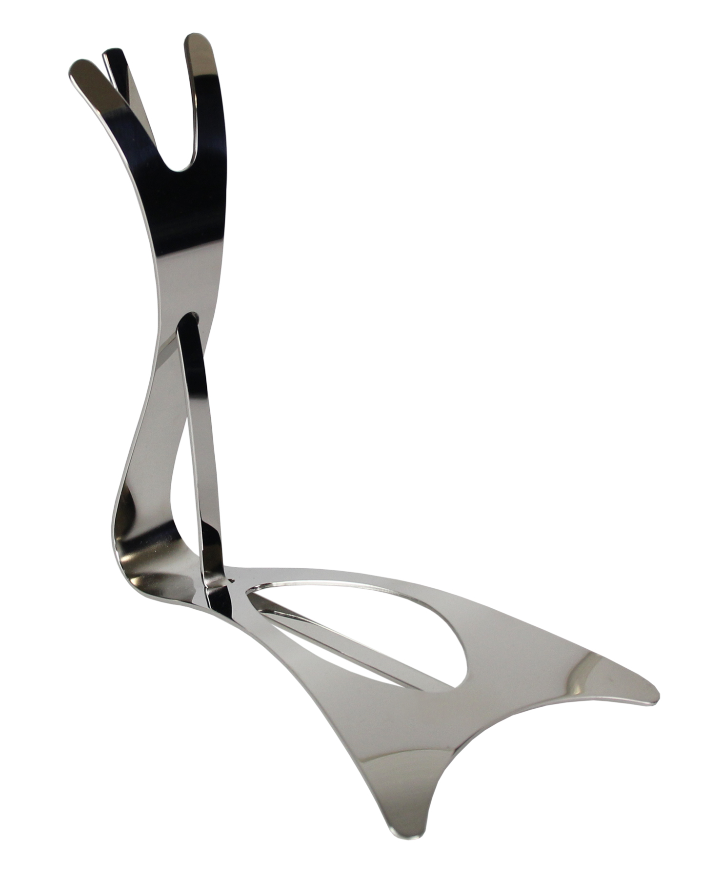 Jalka kiillotettua ruostumatonta terästä. Kotimaista käsityötä.