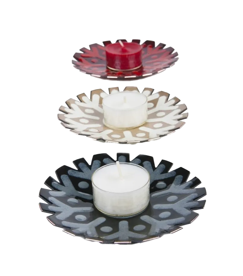 Käsin emaloitu tuikkualusta luo lumihiutalemaisen ja tunnelmallisen kajon. Saatavilla 3 eri väriä, valkoinen, punainen tai musta.
